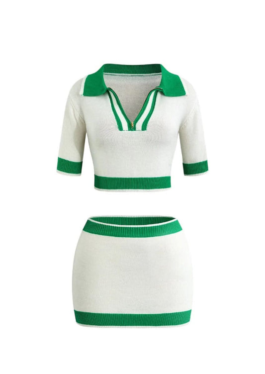Knit Two-Piece Cropped Polo and Skirt Set