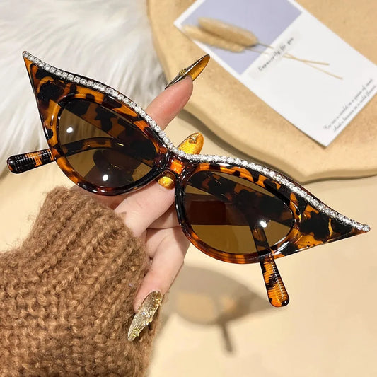 Retro Diamond Embedded Cat Eye Black Sunglasses