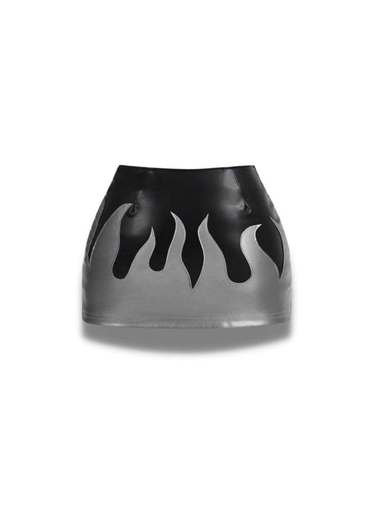 Flame Black leather mini skirt