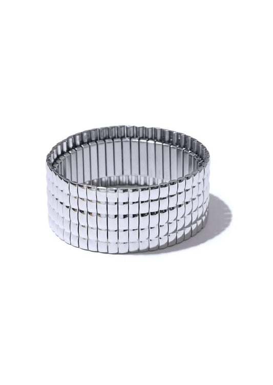 Elegant Silver Wide Metal Bracelet for Stylish Outfits