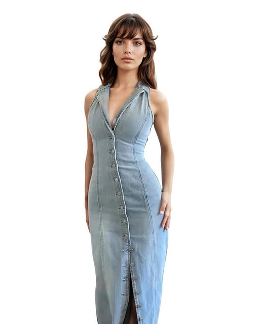 Retro Denim Sleeveless Dress - Casual Chic Women's Fashion