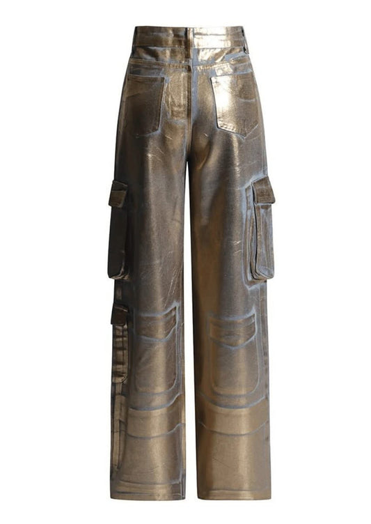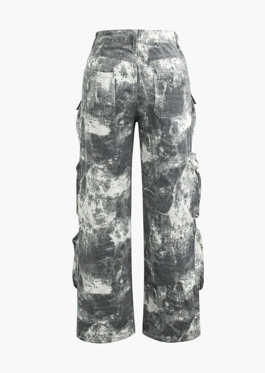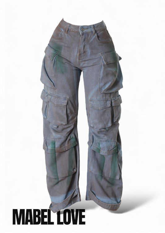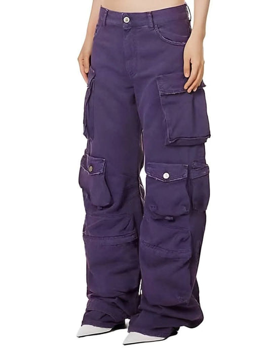 Vintage-Inspired Purple Acid Wash Cargo Denim