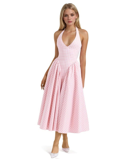 Pink Plaid V-Neck Dress - Sweet Chic Style