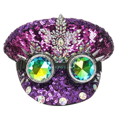 Luxury Military Hat with Ocean Blue Sequined & Diamonds