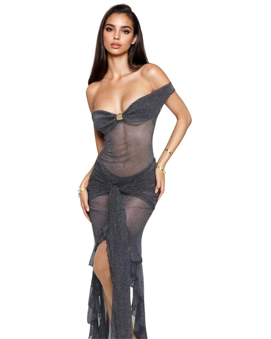 Mesh Patchwork Maxi Dress - Y2K Sexy Midnight Party