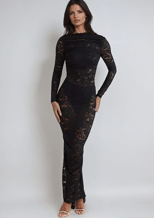 Lace Sheer Maxi Dress - Elegant & Sexy