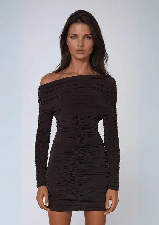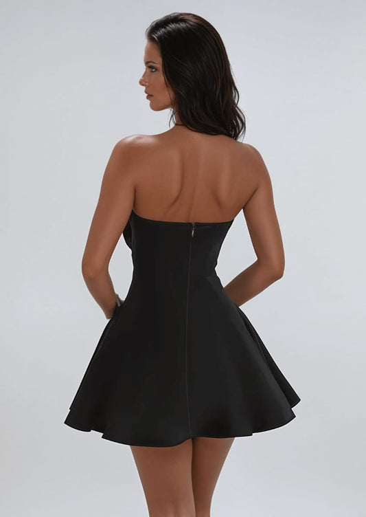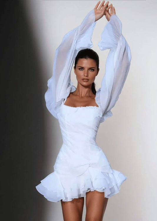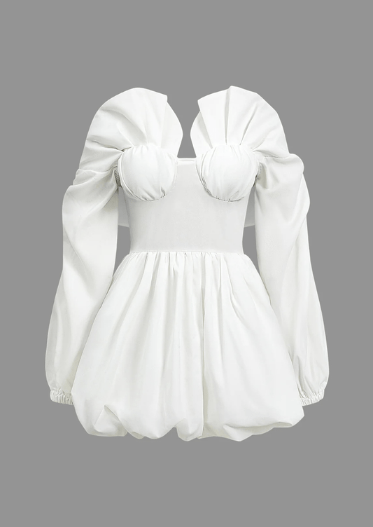 Black Sheer High-Neck Bubble long sleeve mini dress