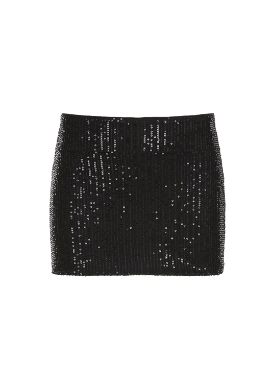 Black Sequin Skirt High Waist - Glamorous Party Mini Skirt