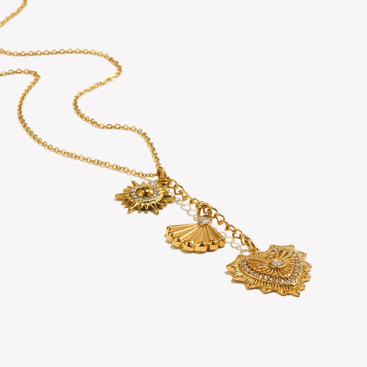 Chic Heart Sun Scarf Necklace for Women – 18K Gold-Plated Stainless Steel