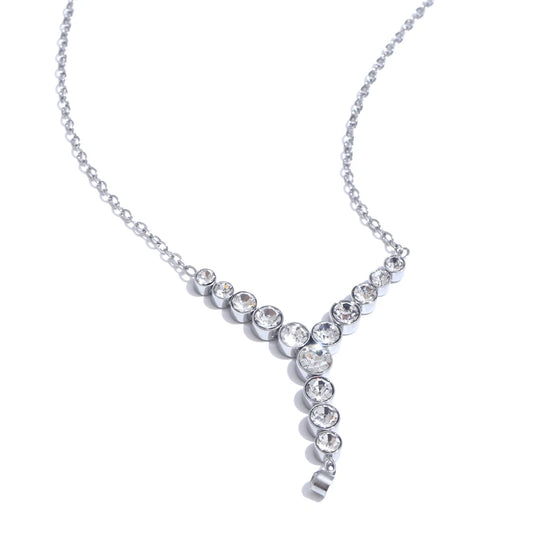 Luxury Y-Shape CZ Pendant Necklace - Stainless Steel Jewelry