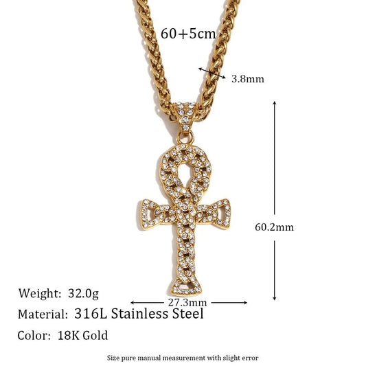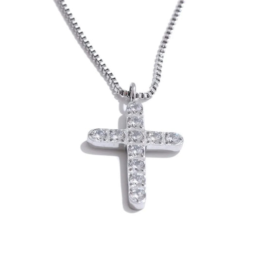 18K Gold Plated White Cubic Zirconia Cross Pendant Necklace