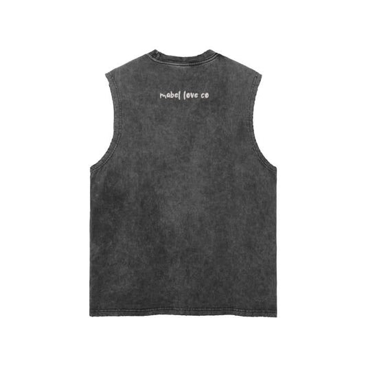 Streetwear Unisex Snow Washed Frayed Hem Tank Top