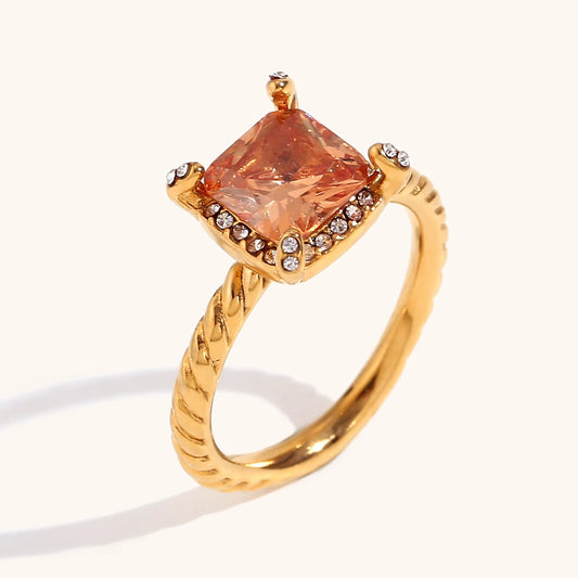 Clear peridot Zircon Stainless Steel Ring - Elegant Statement Piece