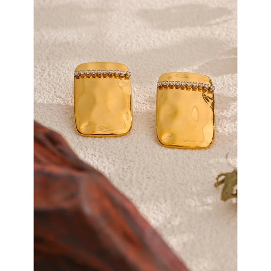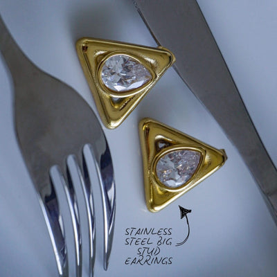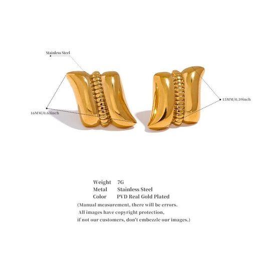18K Gold Geometric Stud Earrings - Waterproof Stainless Steel Statement Jewelry