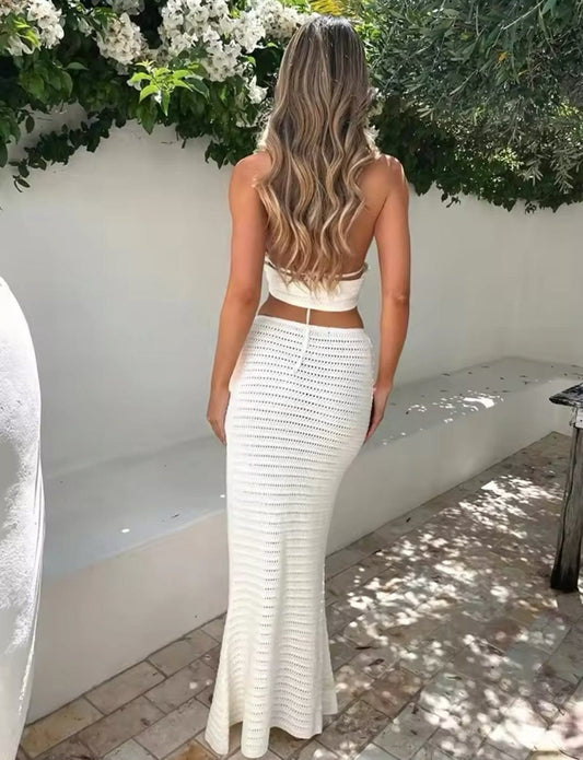 White Knit Maxi Dress - Backless & Bodycon