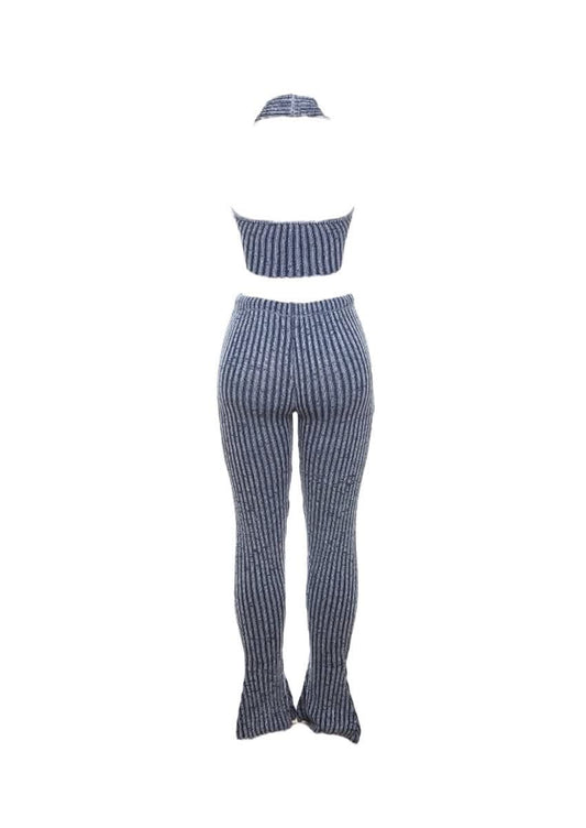 Knitted Two Piece Halter Crop Set