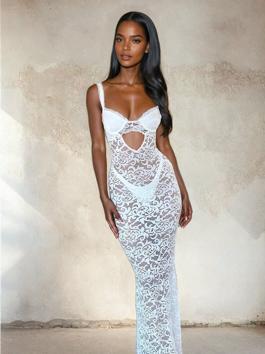 Elegante vestido de encaje blanco: estilo primaveral perfecto