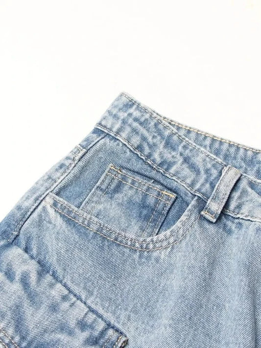 Falda vaquera dividida con múltiples bolsillos