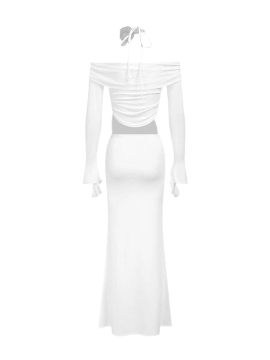 Conjunto maxi blanco de 2 piezas con hombros descubiertos