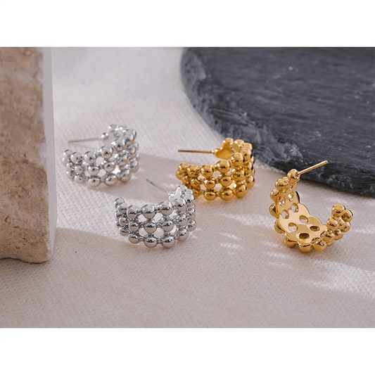 - Pendientes de aro dorados: irradia calidez y sofisticación con diseños dorados atemporales.