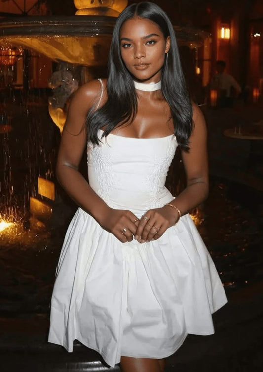 Minivestido blanco con corsé y cordones