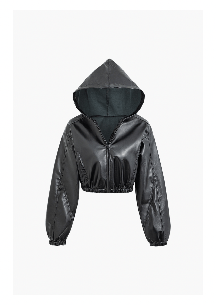 Presentamos nuestra Chaqueta Corta de Piel Sintética para Mujer, una prenda de moda para tu armario de otoño e invierno. Esta chaqueta de inspiración hípster cuenta con capucha y mangas largas, ofreciendo estilo y funcionalidad. El material de piel sintética le da un aspecto chic y vanguardista, mientras que su diseño corto le da un toque moderno. Perfecta para looks casuales, urbanos y con tendencias hípster audaces, esta chaqueta con cremallera es imprescindible para las amantes de la moda.