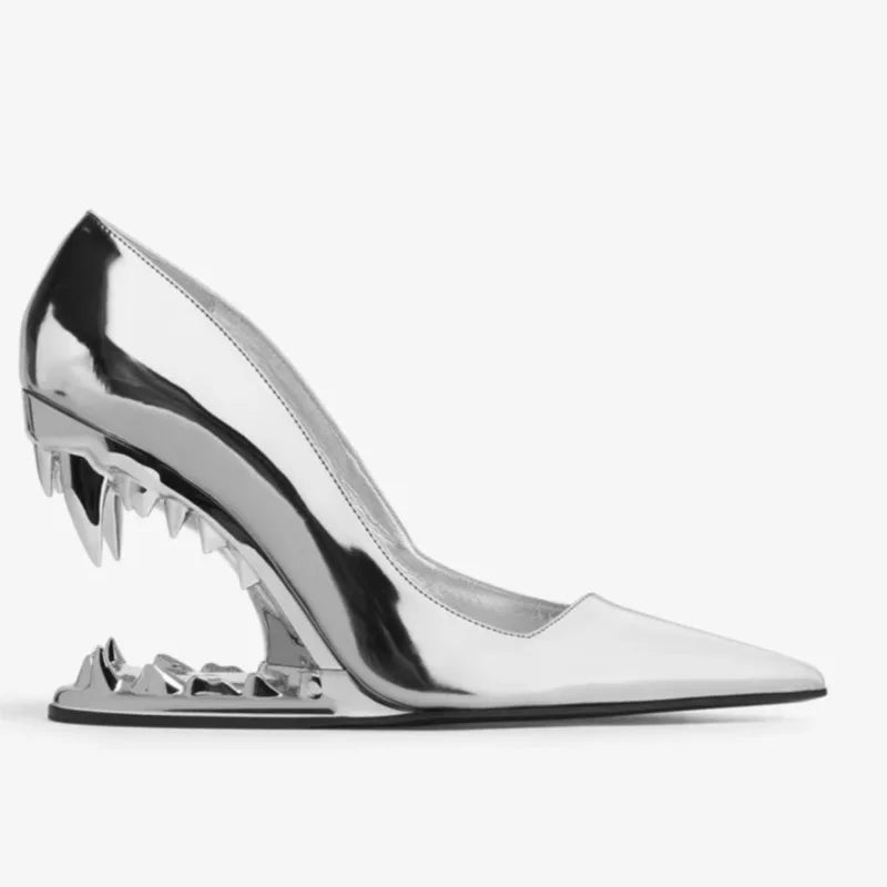 Metal Tiger Tooth Heel Pointy Toe Super High Heel Pumps