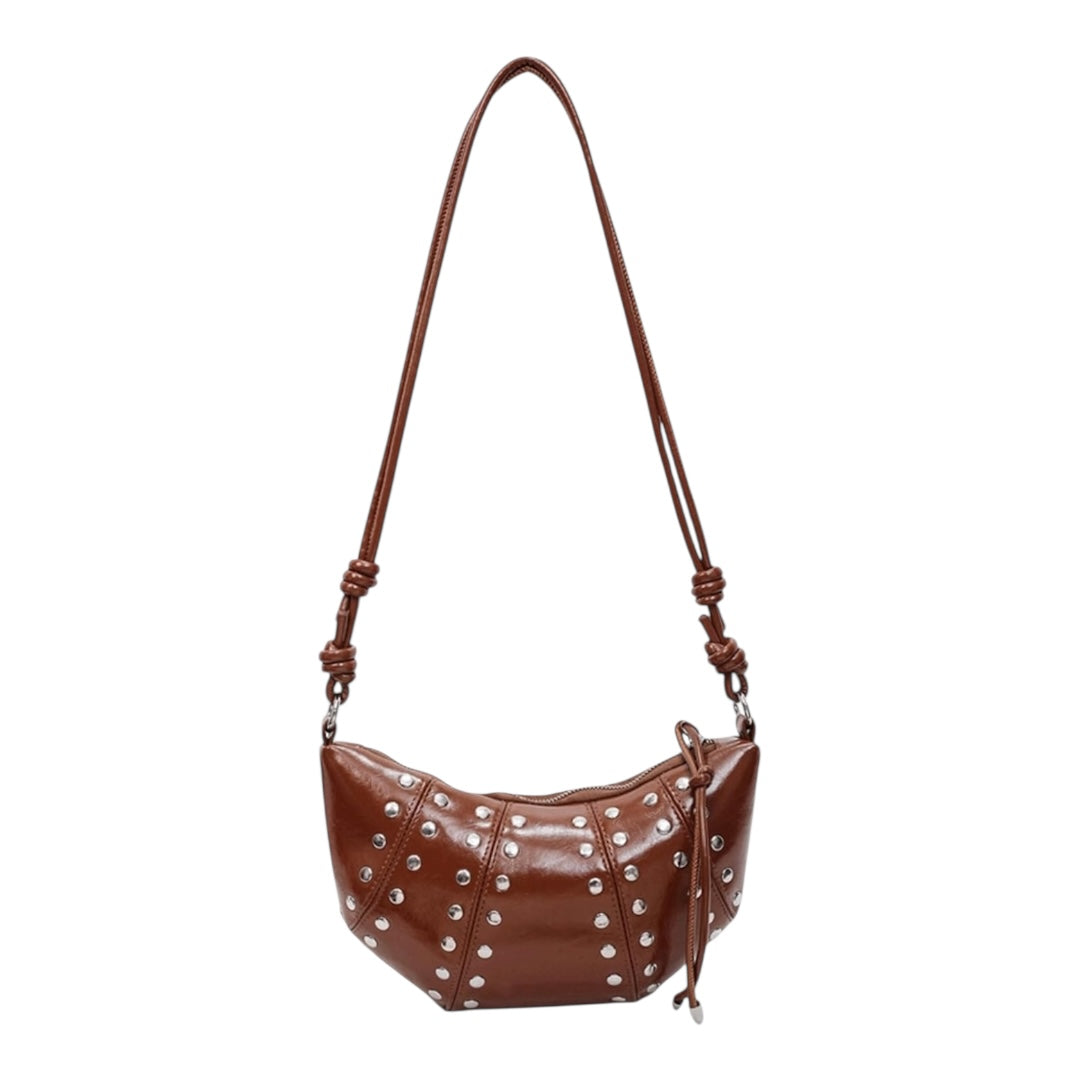Punk Style Rivets Brown PU Leather Crossbody Bag for Women