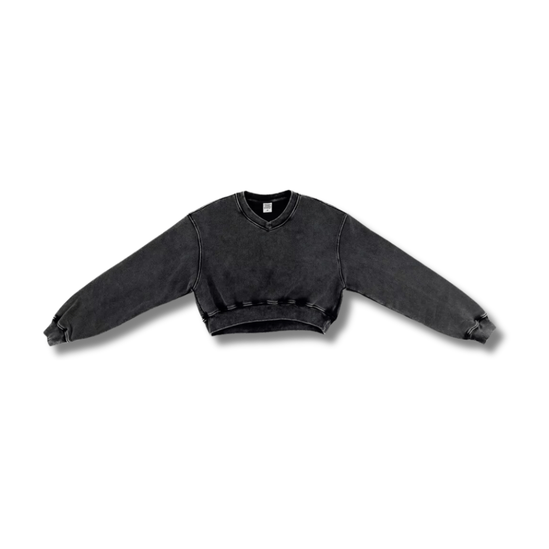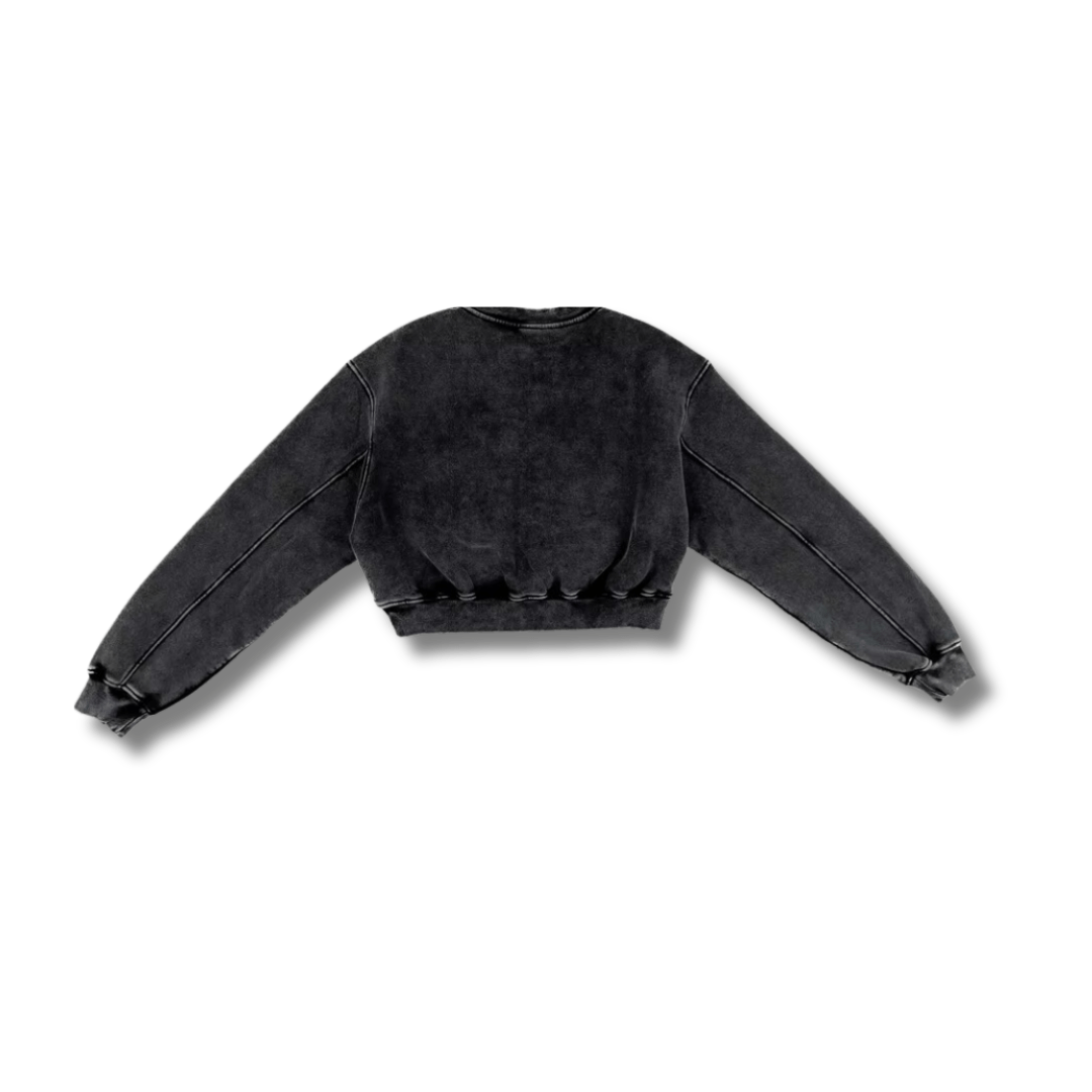 Make a statement with our Black Cropped Sweatshirt featuring a flattering V-neck design. Perfectly balancing casual comfort with edgy style, this sweatshirt is your go-to for lounging, running errands, or elevating your athleisure looks. Its washed, vintage-inspired finish gives it a worn-in charm that never goes out of fashion.