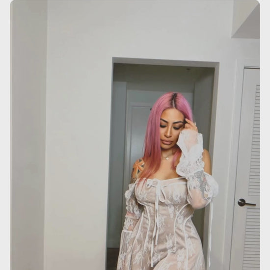 white lace long sleeve mini dress