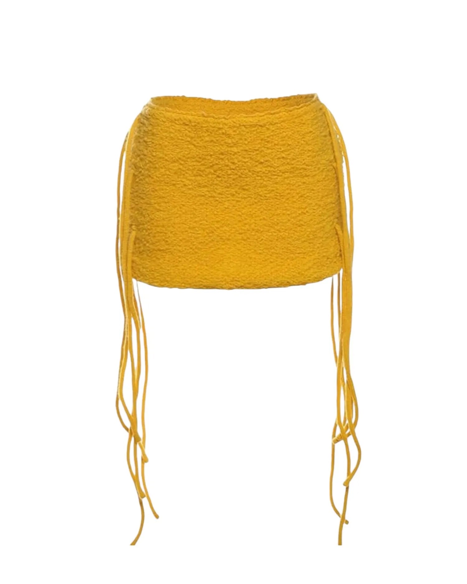Step into the spotlight with our eye-catching yellow tassel mini skirt that perfectly captures the Y2K streetwear aesthetic. This isn't just another skirt – it's your ticket to making a bold fashion statement.